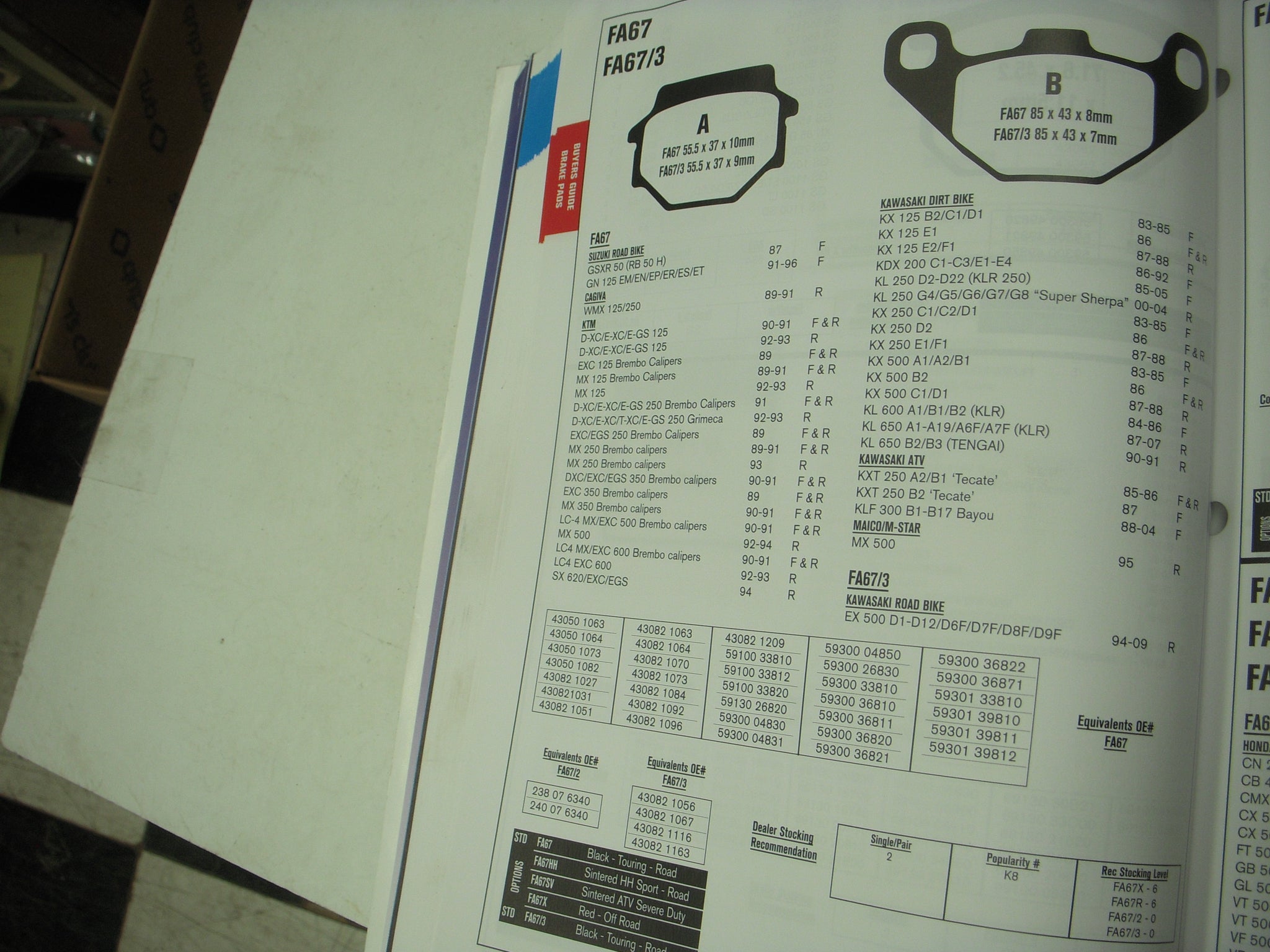 FA67 KAWASAKI KX125 KDX200 KL250 KX250 KL650 KXT250 KLF300 ATV EBC Brake Disc Pads NEW (M44-43)