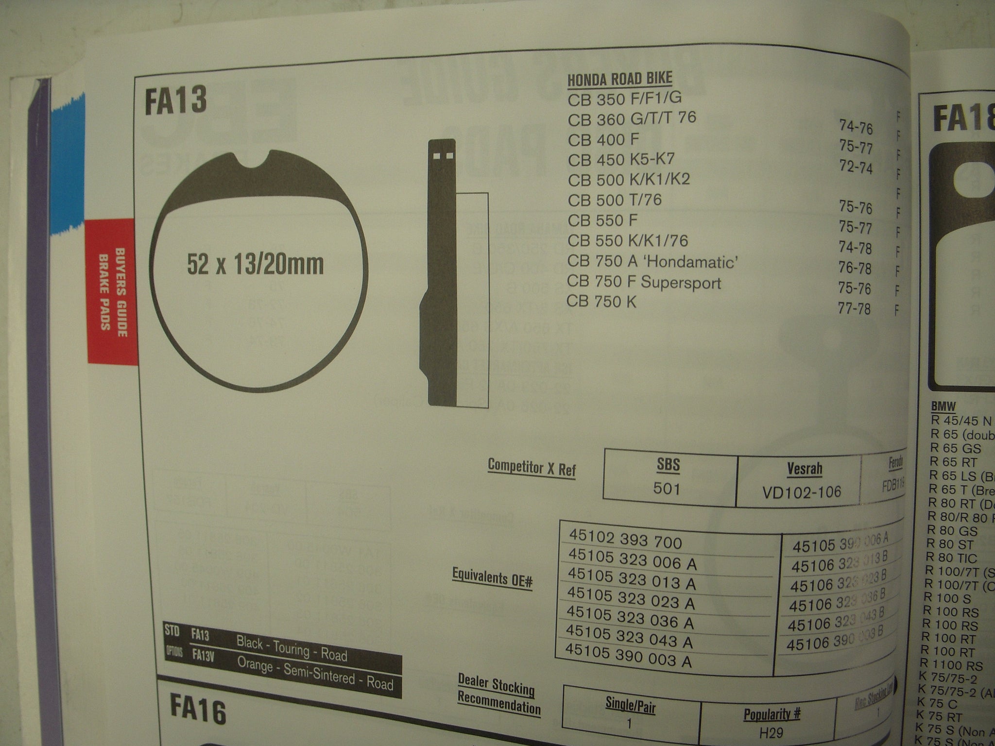 FA13 HONDA CB350 CB400 CB450 CB500 CB550 CB750 EBC Brake Disc Pads NEW (M44-43)