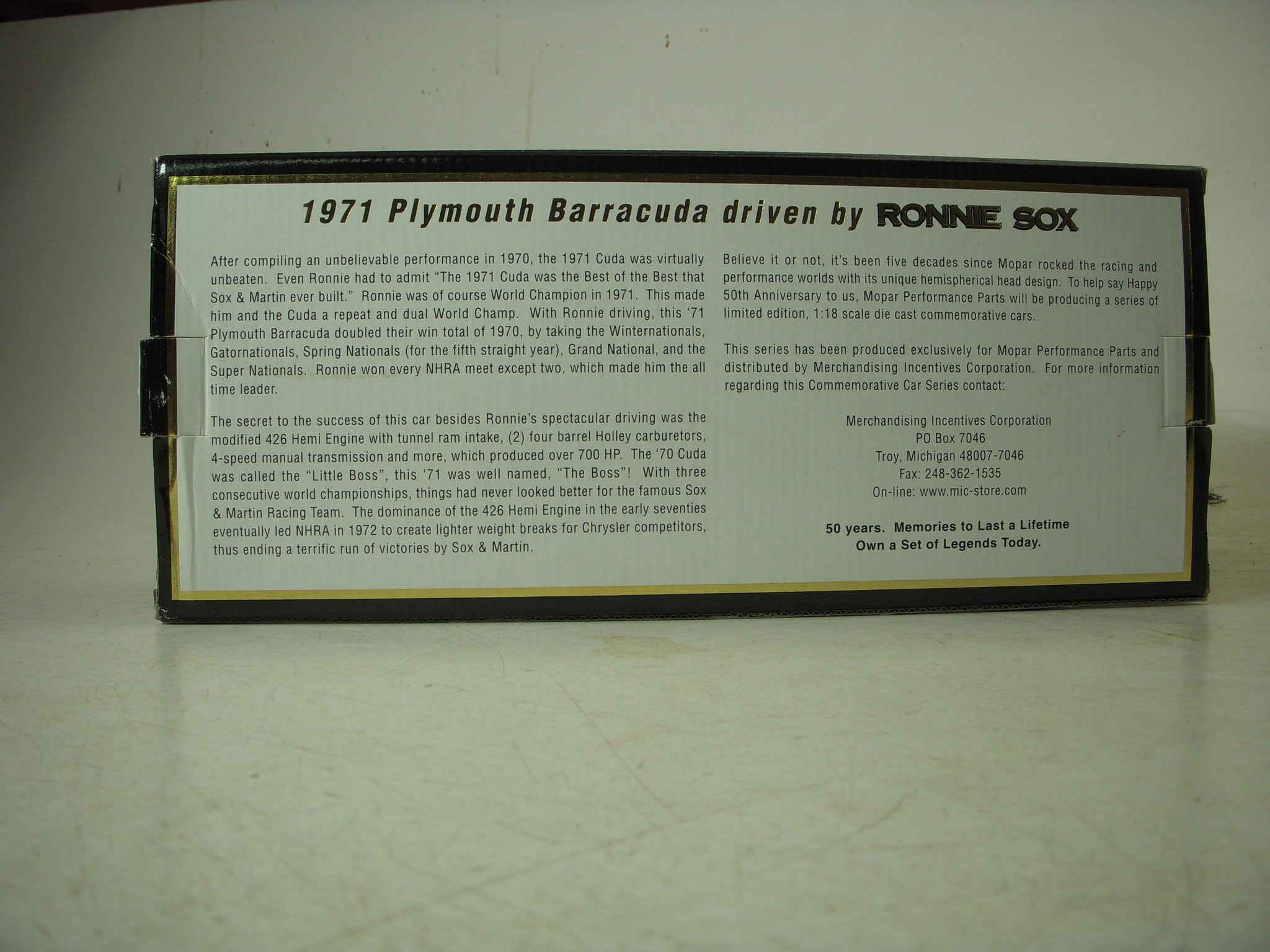 1971 Barracuda Sox & Martin NEW 50 year Hemi Commemorative Series #6 American Muscle Diecast 1:18 scale Collectible