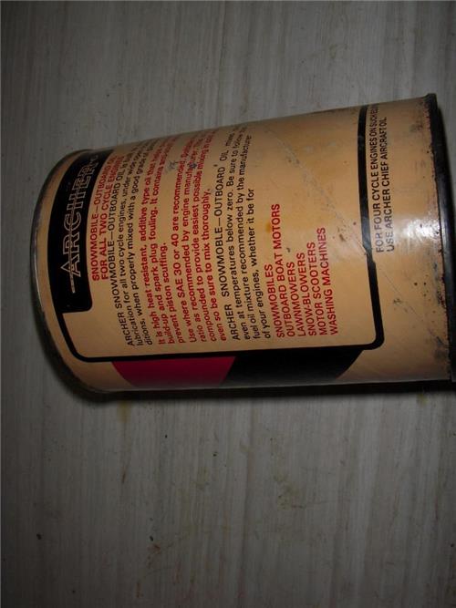 ARCHER SNOWMOBILE OUTBOARD 2 CYCLE OIL TIN QUART VINTAGE FULL CAN NEW COLLECTIBLE (c53-oil1d)
