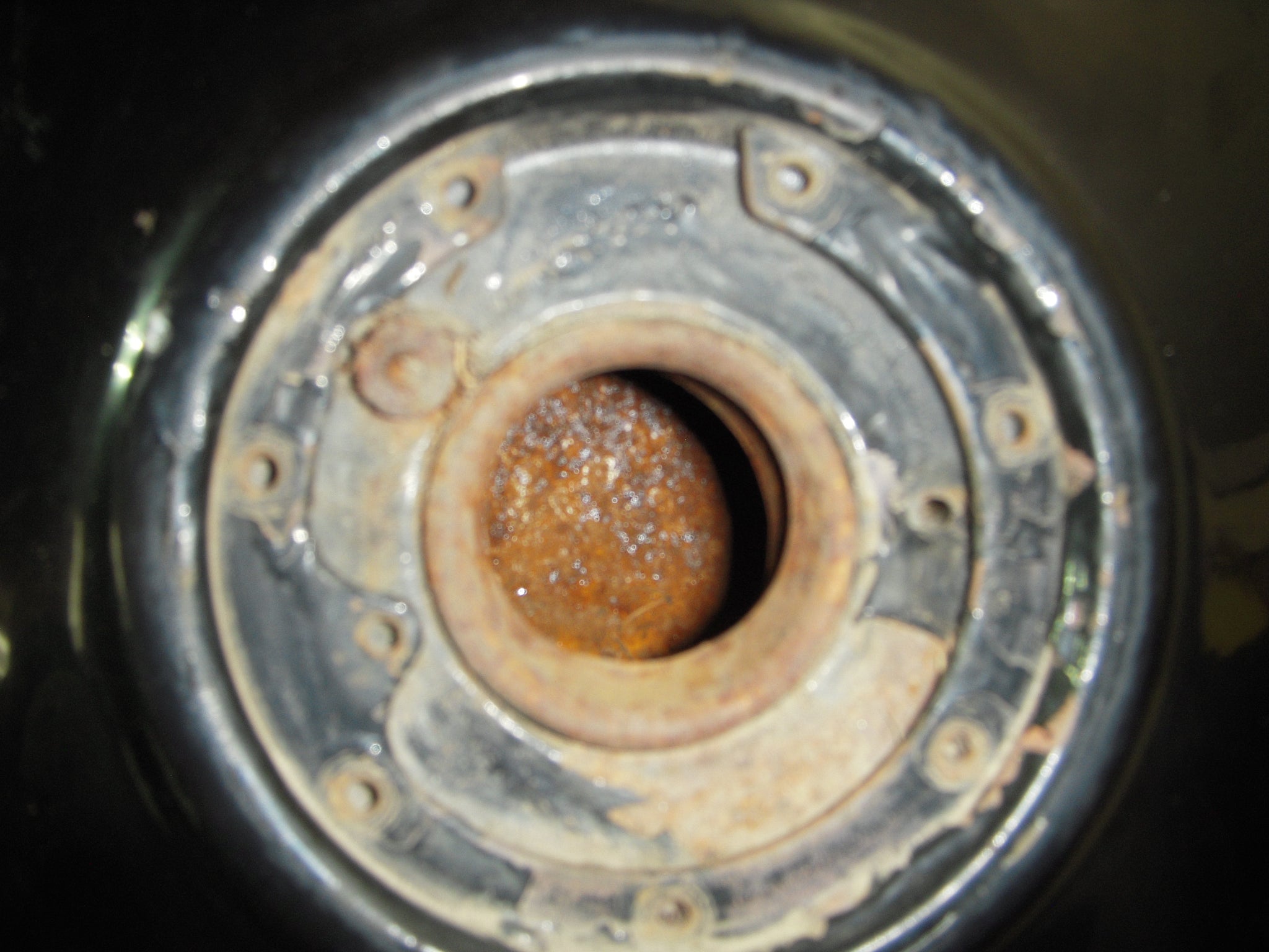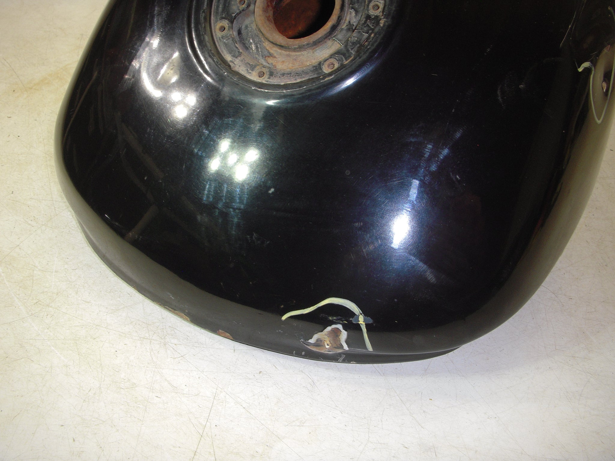 Tank is REPAINT BLACK WITH COUPLE DINGS AND SOME RUST..subject to rust, scratch, scuff etc, so be sure to look at each picture, in which we have tried to mark spots.