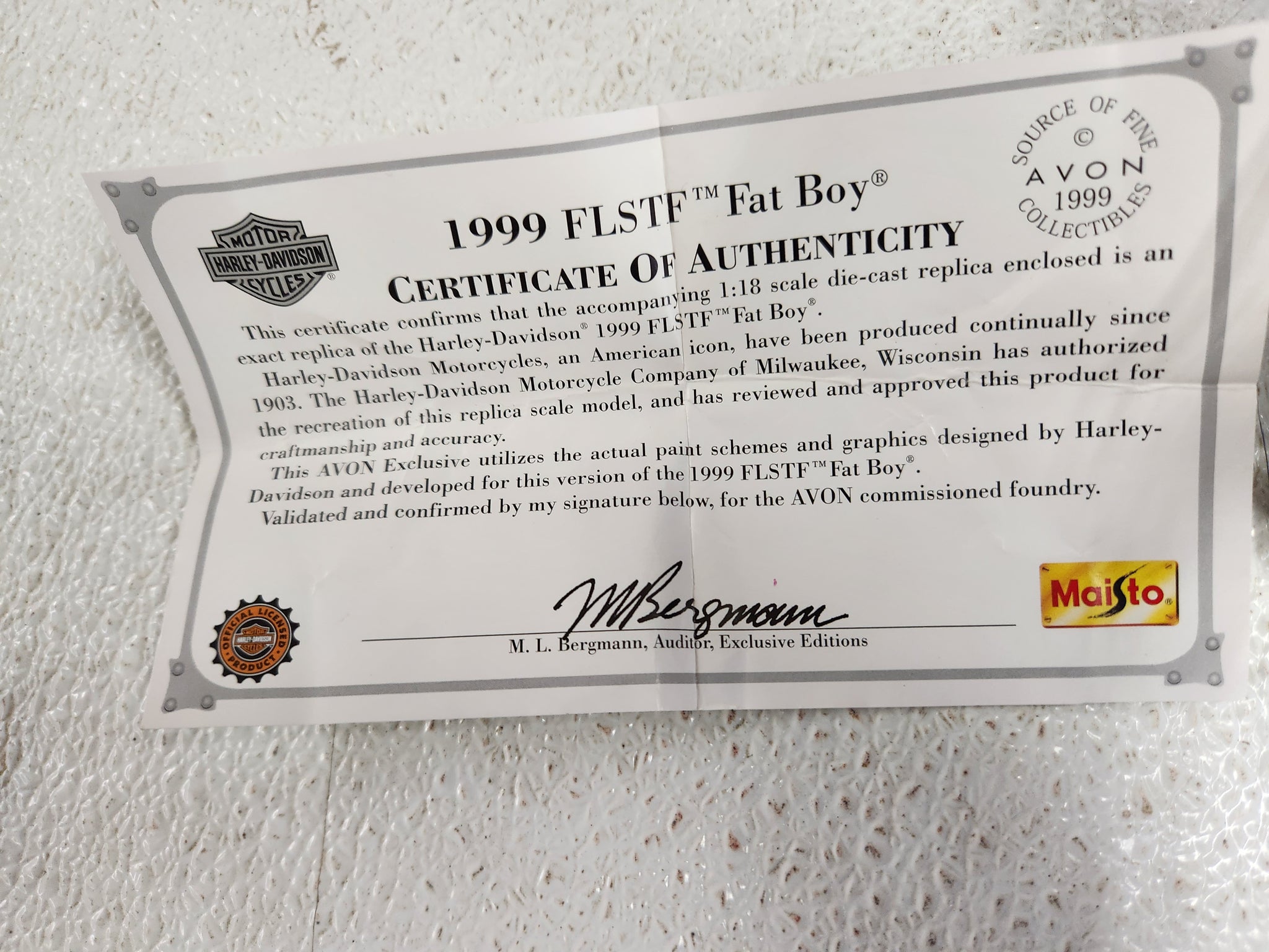 For Sale: 1999 HARLEY DAVIDSON FLSTF FAT BOY 1:18 AVON DIECAST MAISTO