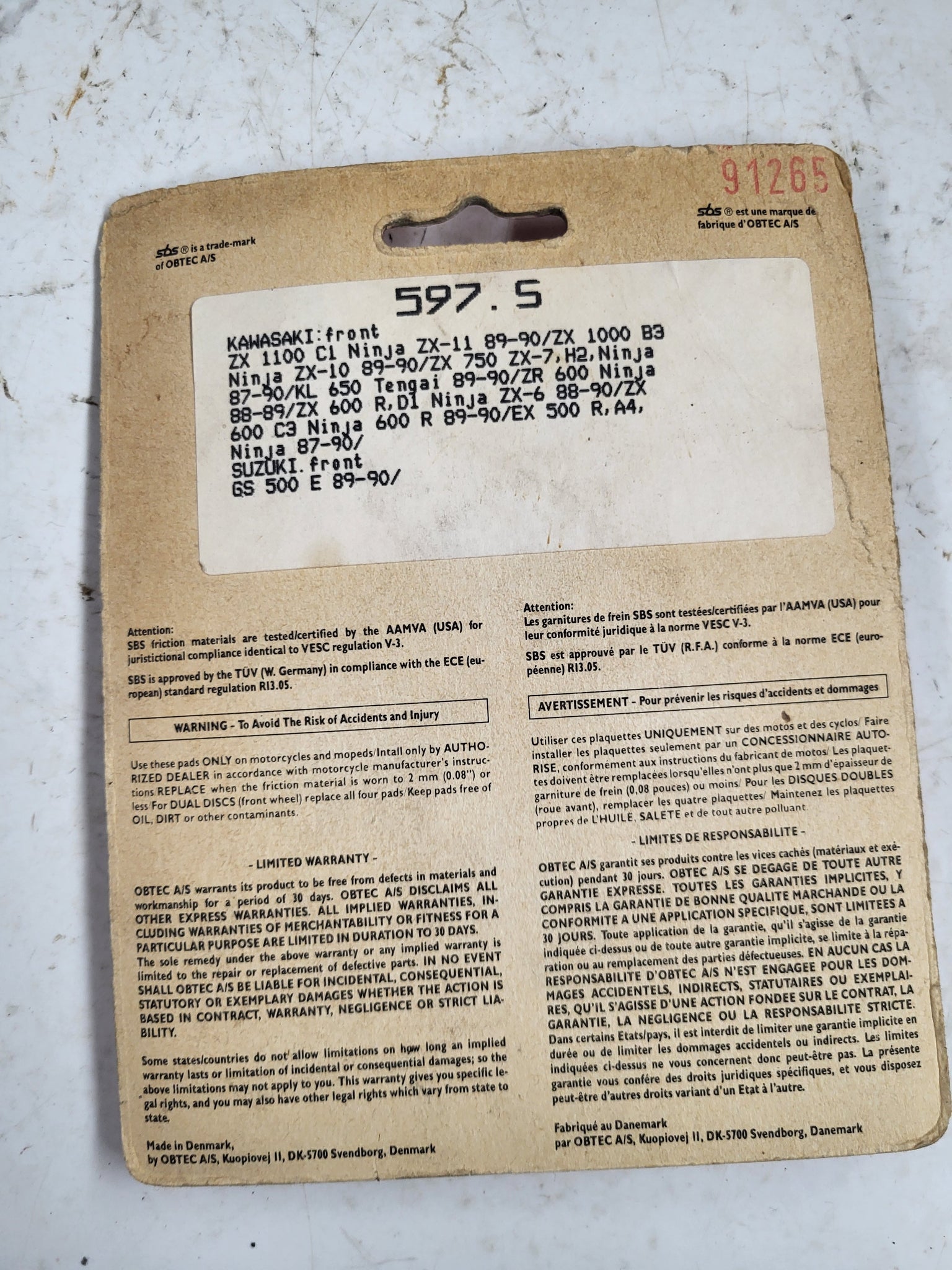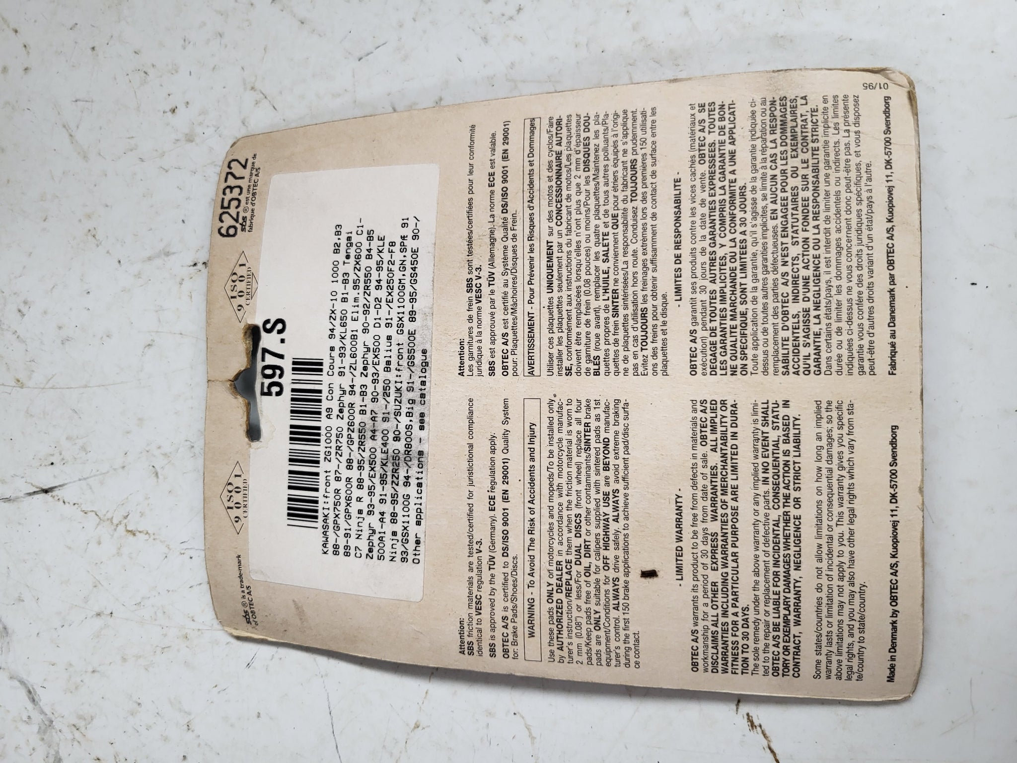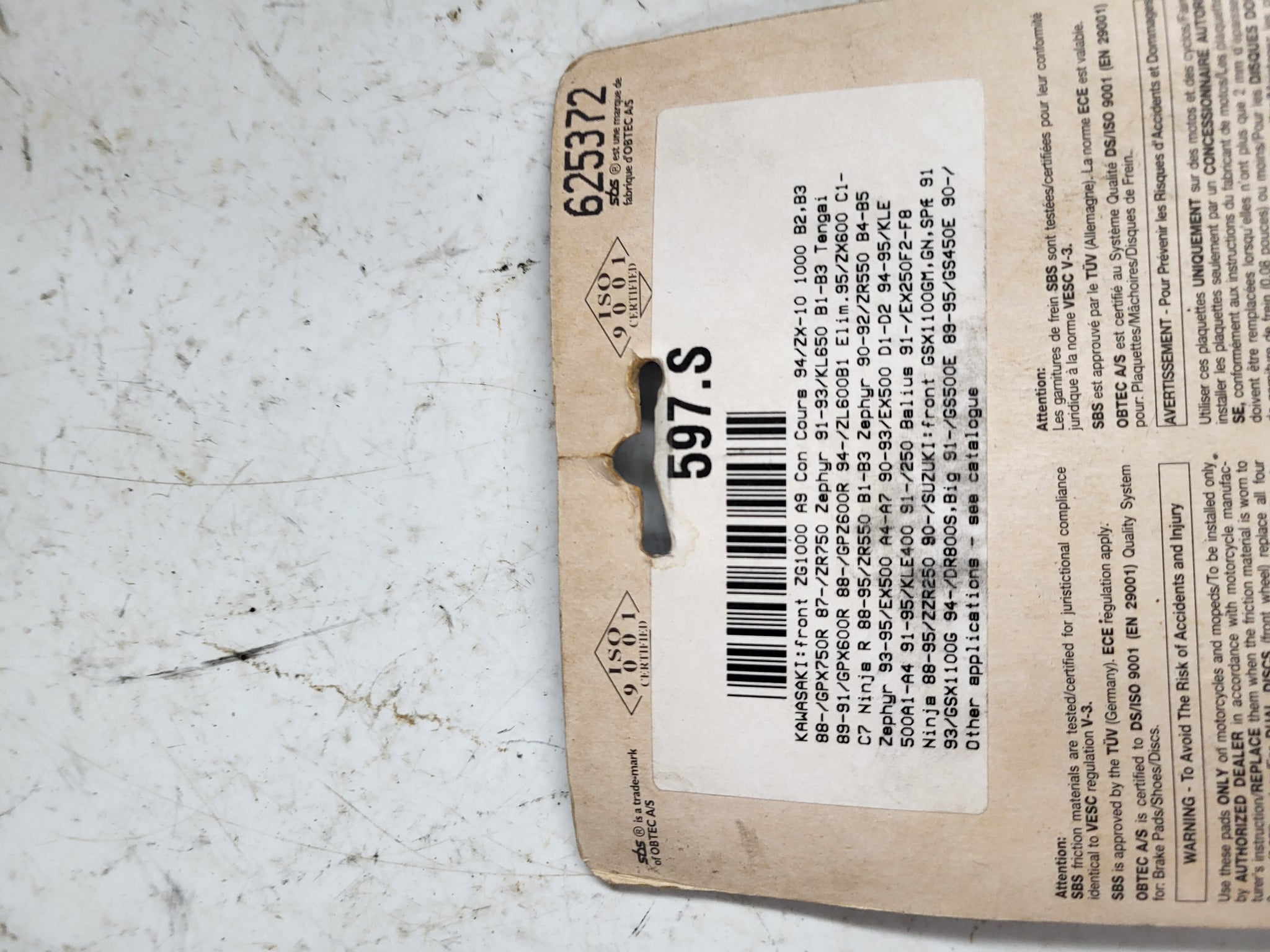 597HF FRONT SBS Brake Disc Pad Set NEW KAWASAKI ZX1100 ZX10 ZX7 (R3-ENDCAP)